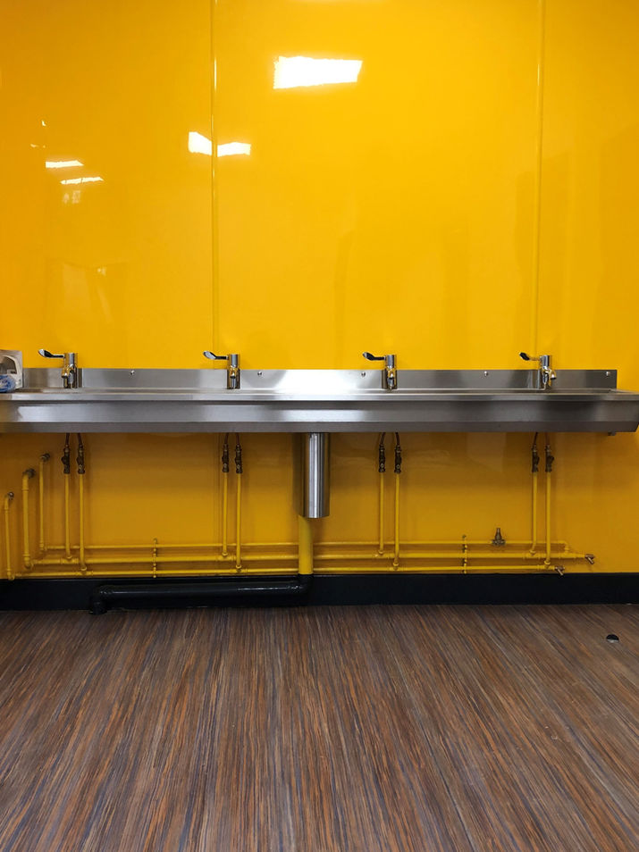 The domestic water services consisted of hot and cold water supplies from central plant to wash hand basins and sinks along with mains cold water to localized electric water heater and instantaneous water boiler.